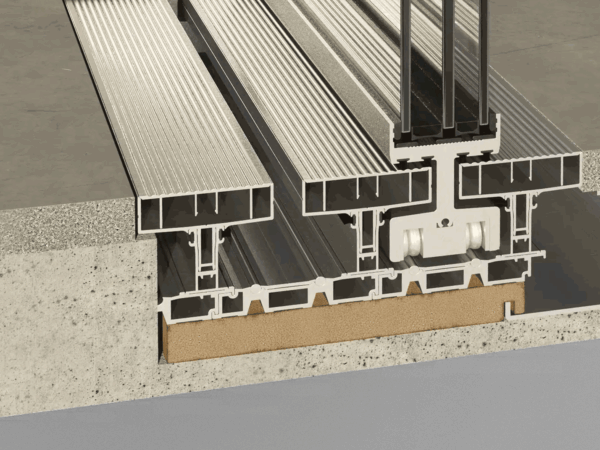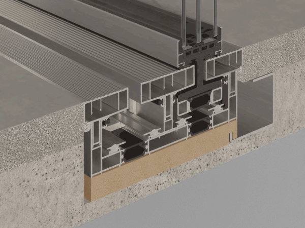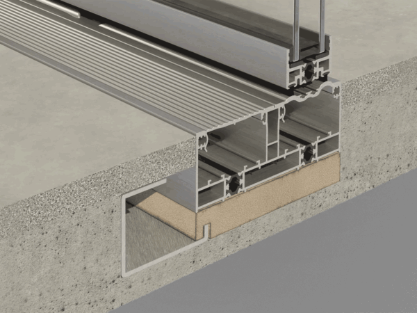 Orama Z° merges the outside with the inside seamlessly. The windows slide over a 1cm wide slot in the floor. The space between tracks is covered with the same flooring material, which creates a continuous space.