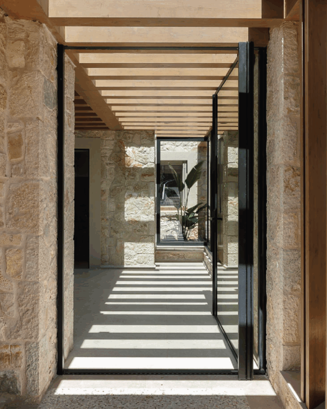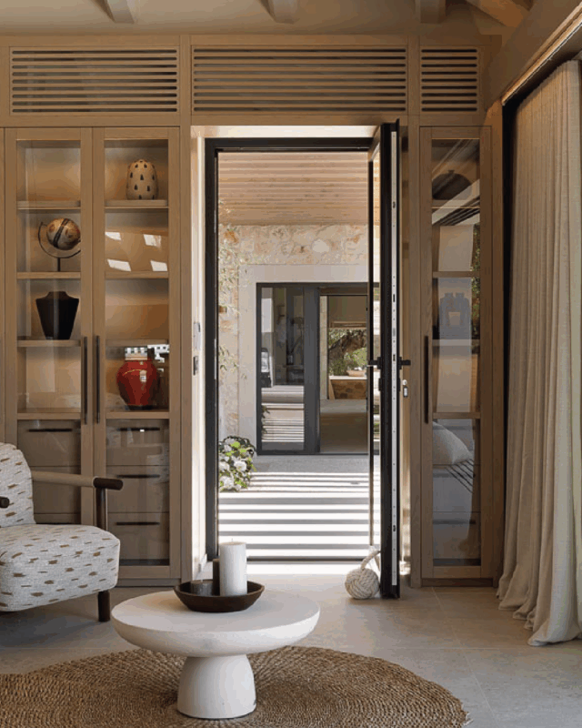 Orama Axis, conceals more than one simple opening operation; the door swings around an asymmetrically located axis, creating a short-lasting anti-gravity moment. Axis gently opens with a simple and effortless push. Axis can be combined with sliding units and share the same frames.