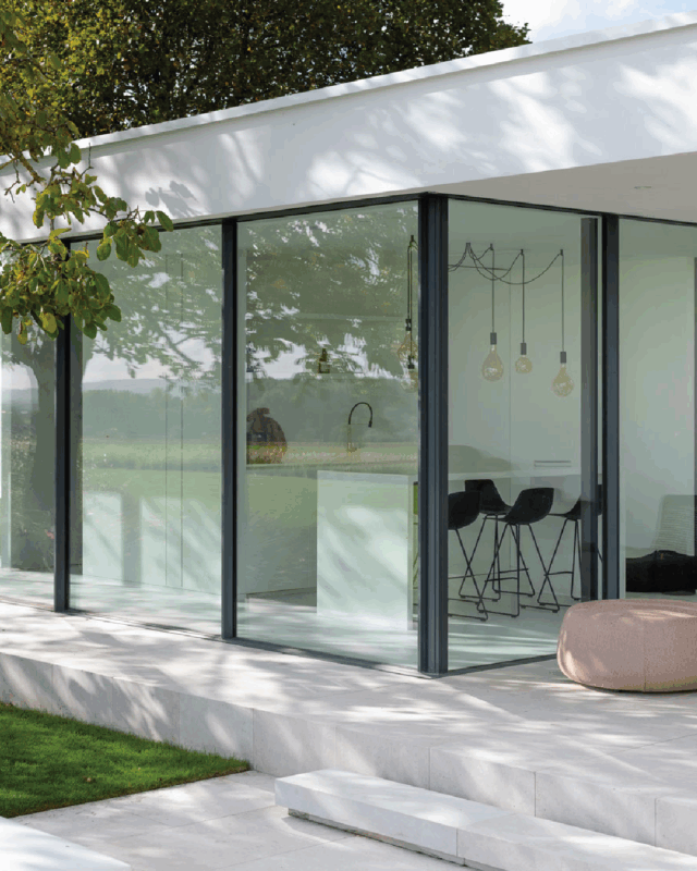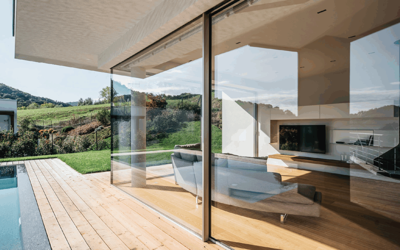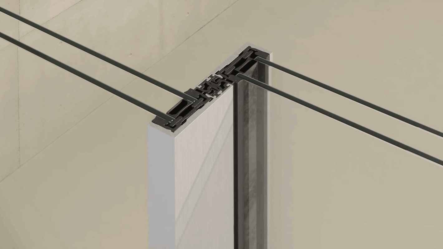Orama One offers frameless transparency from floor to ceiling. This is achieved by the fully concealed track system.